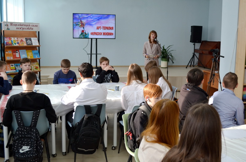 В Центральной городской библиотеке им. Н. К. Крупской стартовал просветительский проект «Добро в мир» . Проект направлен на профилактику интолерантного поведения и формирование толерантного отношения молодого поколения к своей личности, окружающим людям, семье, истории и культуре своей малой Родины. На встрече с профессиональным психологом, кандидатом педагогических наук Ольгой Павловной Аликиной учащиеся МАОУ СОШ №5 учились устанавливать контакты друг с другом, изучали свою личность и подбирали ключи к своему развитию. С помощью арт-терапии школьники попытались отобразить в рисунках свои чувства и мысли. Благодаря универсальной технике у них появилась возможность снять эмоциональное напряжение, проработать коммуникативные навыки и раскрыть собственный потенциал.