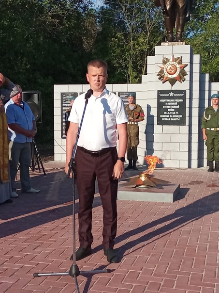 Роман Рыжков совместно с главой Старосеславинского сельсовета Еленой Корябкиной зажгли Вечный огонь в память о беспримерном подвиге, мужестве и отваге наших земляков, отдавших жизни на полях сражений.