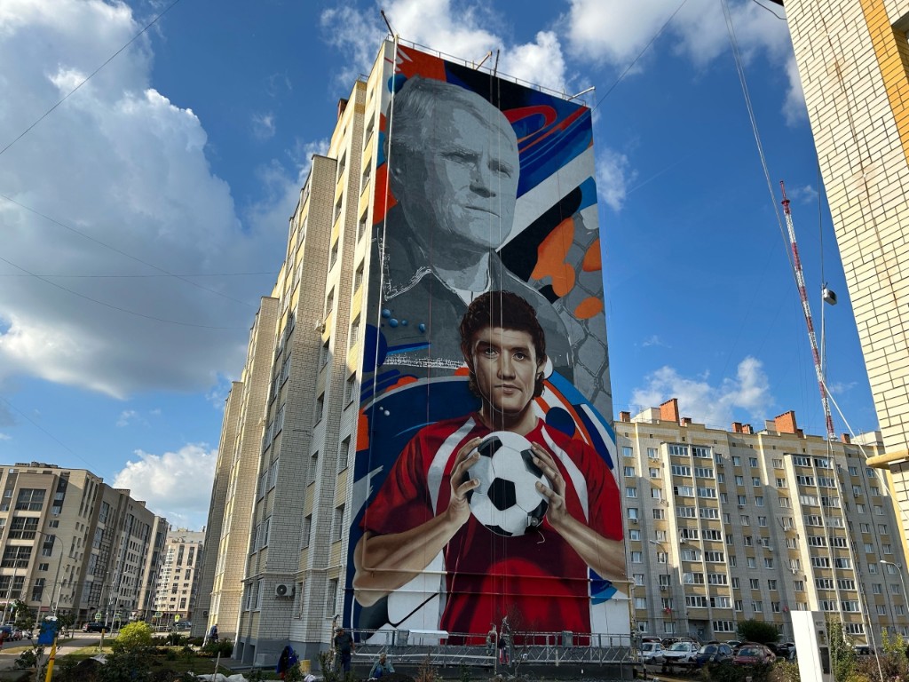 Уличные художники закончили рисовать портреты наших земляков — футболиста Юрия Жиркова и его тренера Валерия Шарапова. Мурал появился на доме 2и по улице Агапкина.