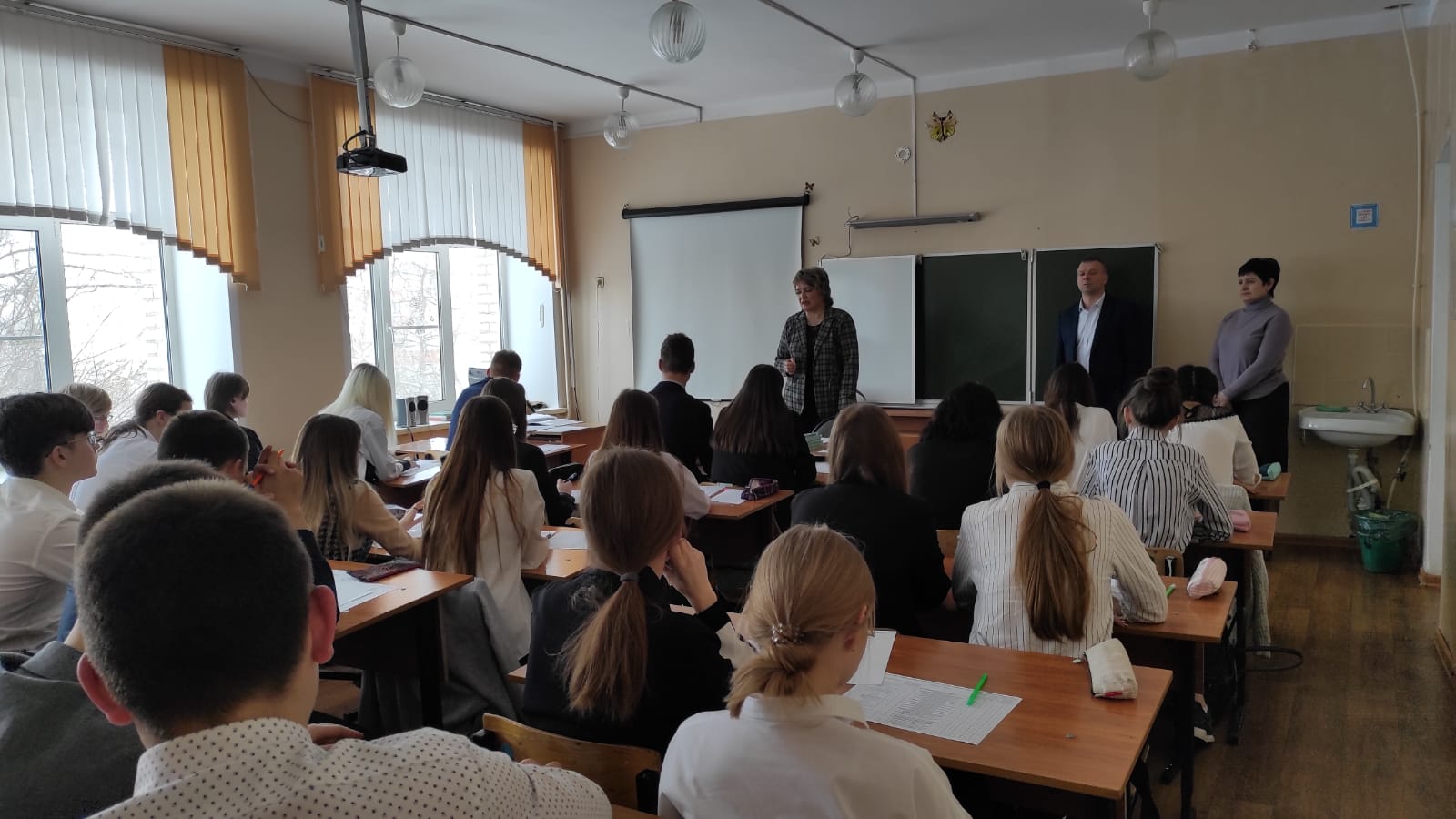 Перед началом испытаний сотрудники университета рассказали учащимся об учебном заведении, направлениях подготовки, формах и сроках обучения, условиях поступления, провели анкетирование по профориентации для старшеклассников.