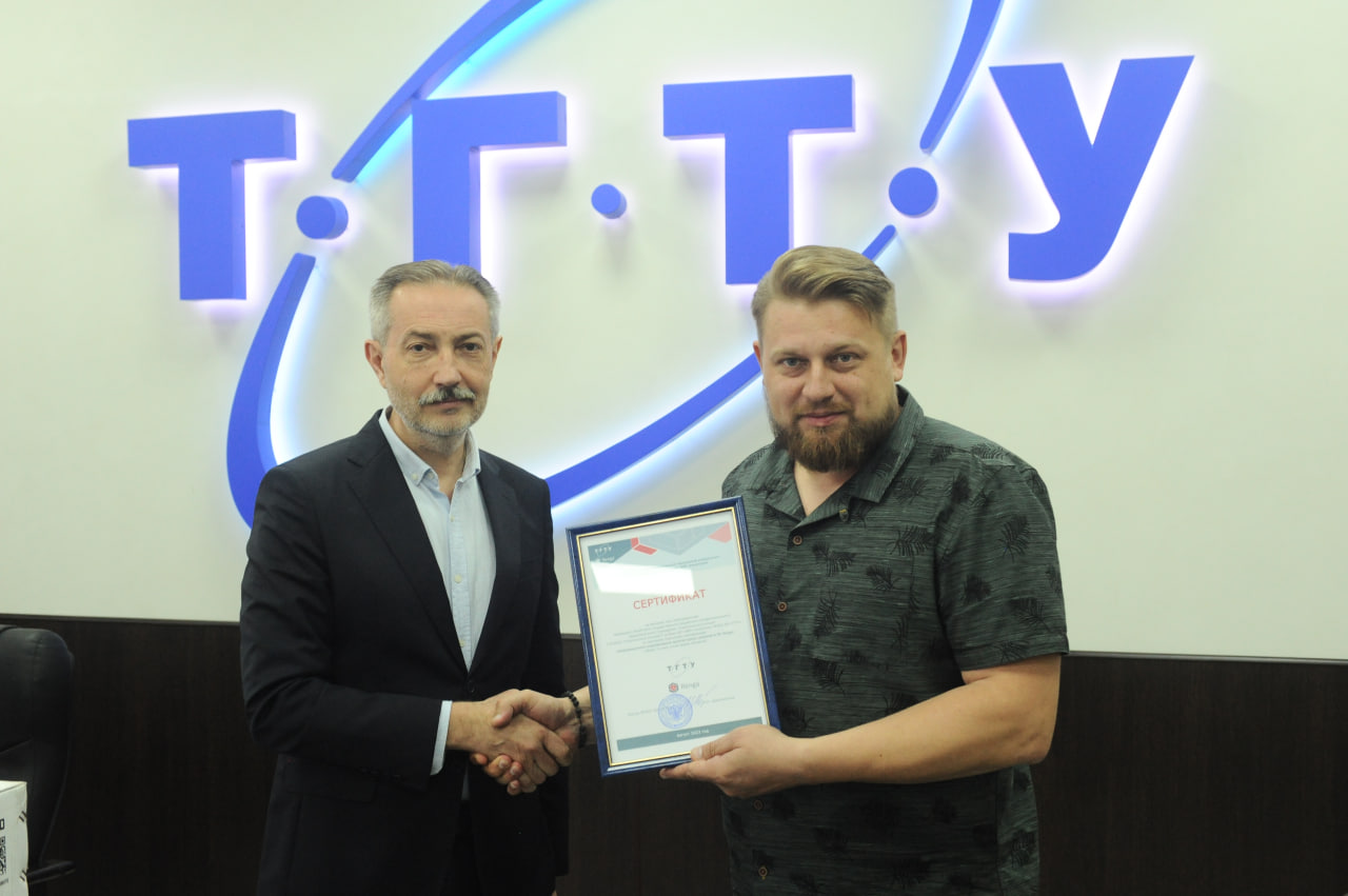 В завершение встречи Михаил Краснянский вручил Алексею Зотову сертификат на обучение преподавателей колледжа на базе Центра коллективного пользования ТГТУ «BIM-технологии» по программе повышения квалификации «Информационное моделирование архитектурных решений в ПК Renga», а также передал в подарок колледжу от университета 3D-принтер, необходимый для развития подготовки специалистов по информационному моделированию в строительстве.