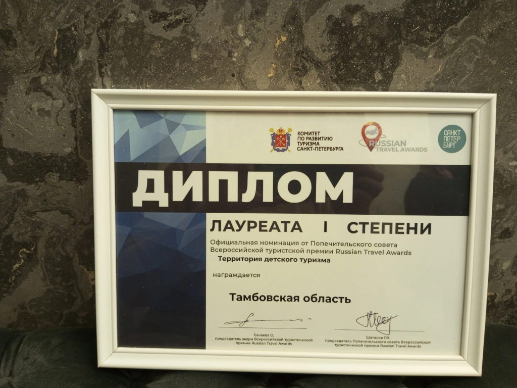 В Санкт-Петербурге были объявлены победители II Всероссийской туристической премии Russian Travel Awards. Тамбовская область стала лучшей в номинации «Территория детского туризма».