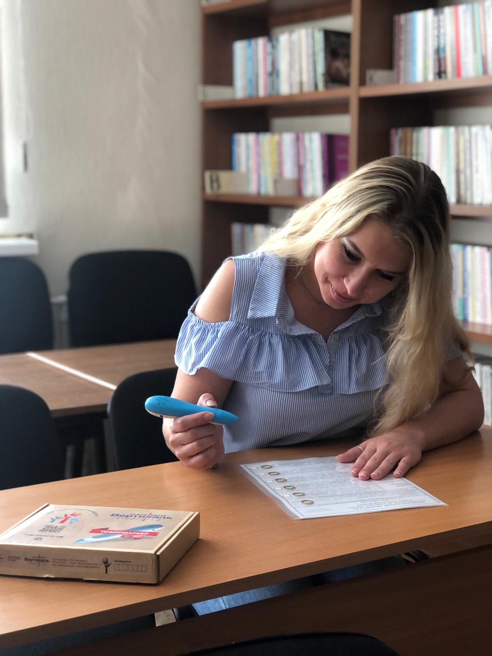 Для удобства избирателей спецучастки обеспечат информационно-разъяснительными материалами со шрифтом Брайля и трафаретами с нанесением тифлометок. При помощи тифломаркера избиратель сможет самостоятельно, без помощи постороннего лица ознакомиться с содержанием избирательного бюллетеня и заполнить его. Тифломаркер – это прибор с голосовым помощником, внешне напоминающий шариковую ручку или маркер. Тифломаркер работает посредством поднесения включенного устройства к тифлометке, содержащей сообщение в голосовом формате.
