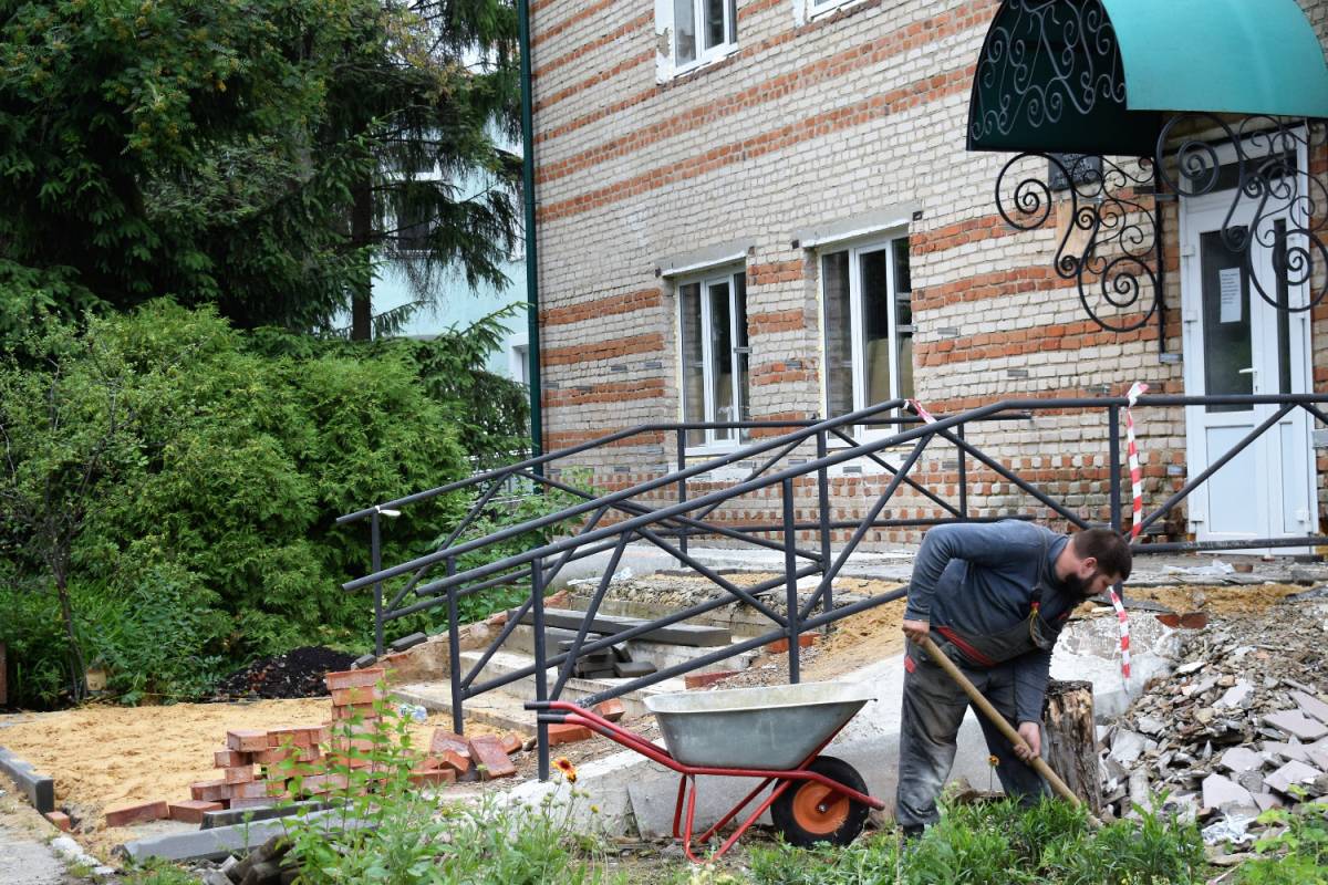 Подрядчики полностью провели демонтаж здания, выровняли стены гипсокартоном по каркасу, заменили электропроводку, оконные блоки. В настоящее время осуществляется монтаж отмостки входной группы, замена системы отопления, а также монтаж под систему фасада.