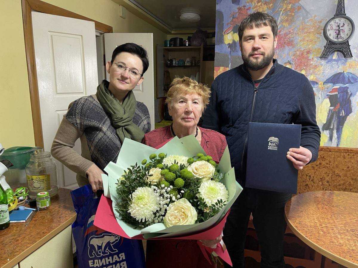 Тамбовские партийцы Валерий Иржанов и Татьяна Загузова поздравили с днем рождения старейшего члена «Единой России» Нину Петровну Дворяшину. Партийцы передали имениннице поздравление от секретаря Генерального совета «Единой России» Андрея Турчака и подарки.