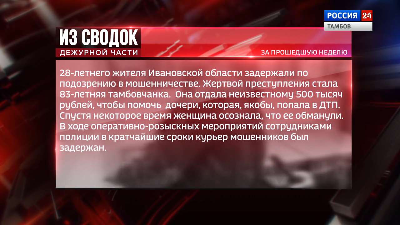 Автор ГТРК «ТАМБОВ» О наиболее значимых происшествиях и приговорах за последние 7 дней.