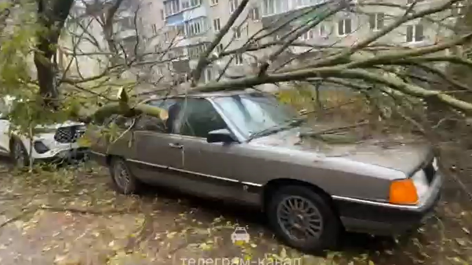 Во дворе на Пензенской дерево упало на припаркованные автомобили. Видео с места происшествия опубликовано в Телеграм-канале «Полоса безопасности». Пострадавших нет.