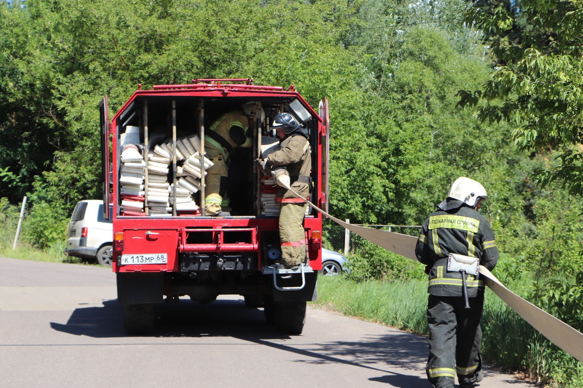 Согласно вводной на территории села Тулиновка Тамбовского муниципального округа произошел условный ландшафтный пожар в районе улицы Красная Дача на территории оздоровительного лагеря «Сосновый бор». Основная задача учений - оперативное реагирование подразделений на условный пожар и организация бесперебойной подачи огнетушащих веществ на дальние расстояния при помощи пожарной насосной станции и автомобиля рукавного.