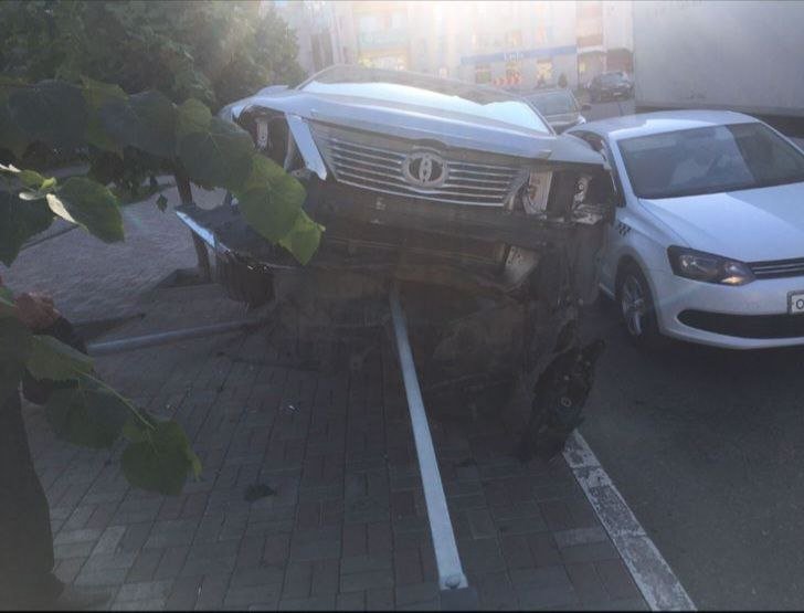 Как стало известно, водитель автомобиля "Тойота Камри" потерял сознание, нажал на газ и заехал на ограждение и дорожный знак.