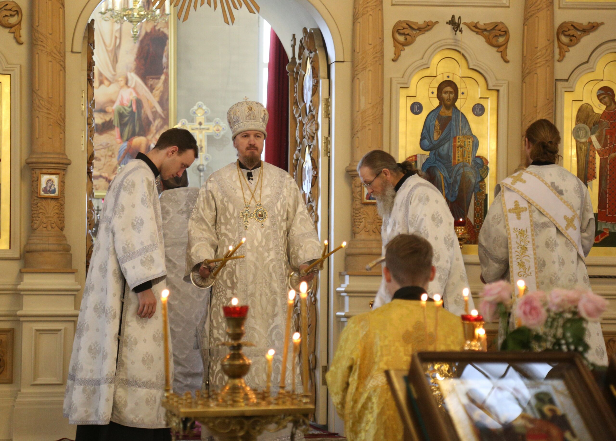 Его Преосвященству сослужили клирики Христорождественского собора: священники Виктор Кончаков, Владимир Алейников, Владимир Васильев, Сергий Растрёпин, иеромонах Питирим (Сухов) и диакон Сергий Демидов.