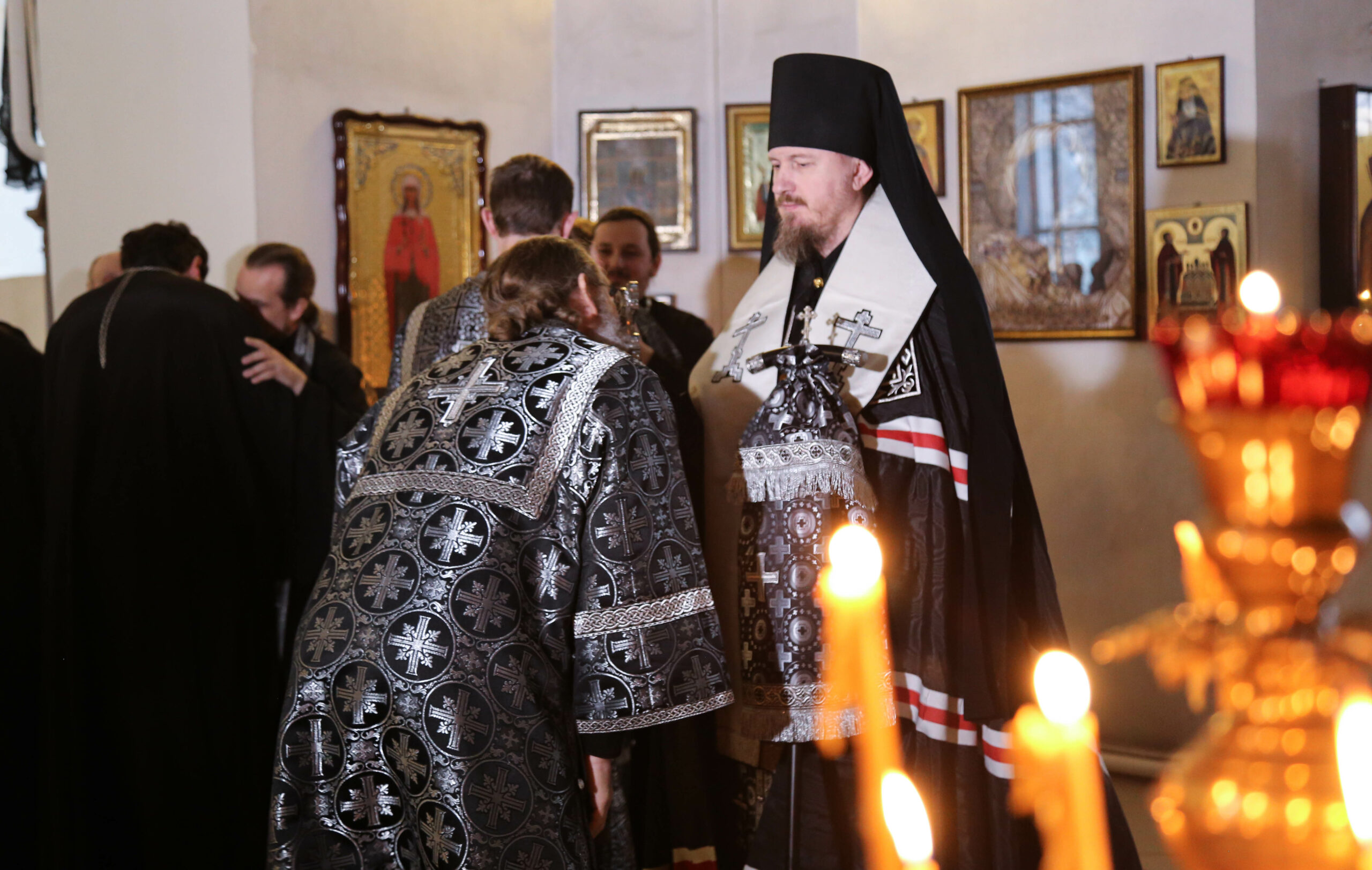 По уставу в середине вечерни священнослужители сменили облачения на черные, в которых пройдут все последующие будничные богослужения Великого поста.