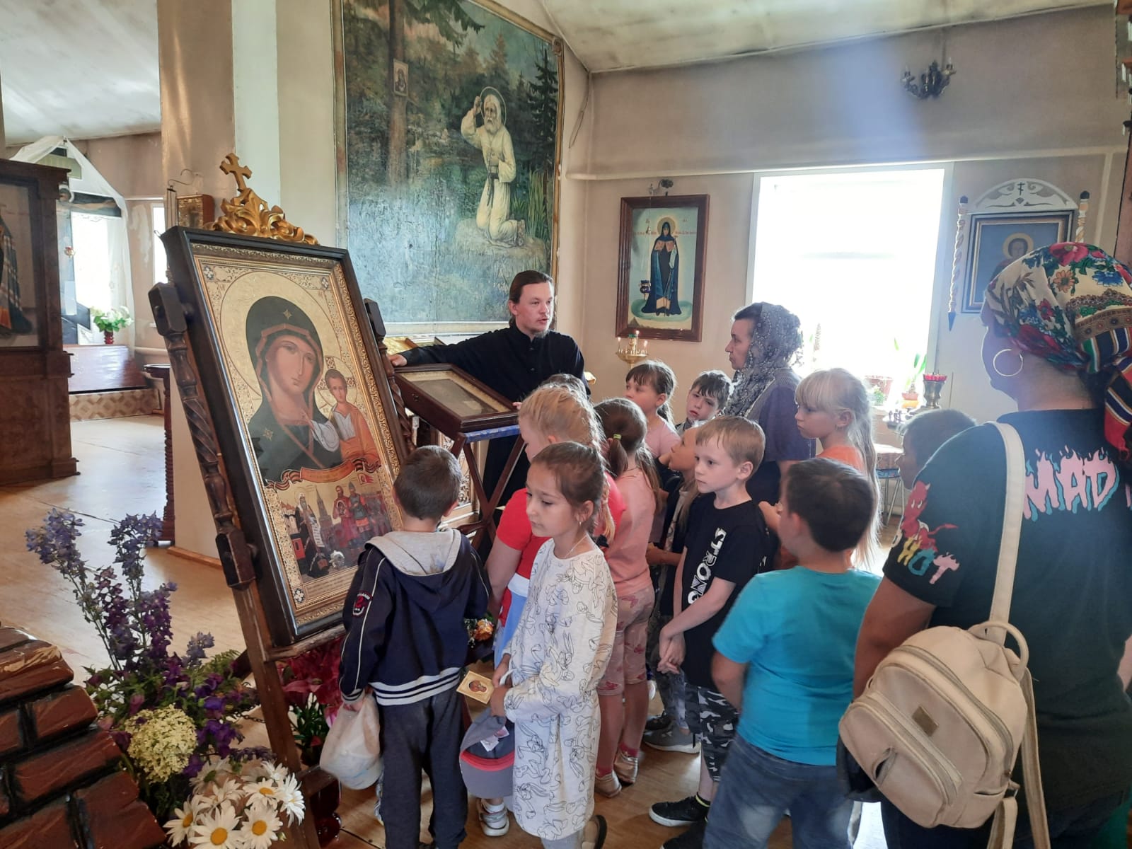 Благочинный Жердевского благочиннического округа священник Иоанн Минаев рассказал детям об устройстве храма, о жизни благоверного князя Александра Невского, о прибывших на жердевскую землю Святынях: копии Небоявленного Креста, образ Магаданской иконы Божией Матери, образ Казанской Пресвятой Богородицы, икону Святителя Николая Чудотворца и икону преподобной Зосимы Эннатской (Уфимской). Детей на экскурсии сопровождала преподаватель Лидия Тарасова. Ребята с большим интересом расспрашивали батюшку о ликах Святых, изображенных на иконах.