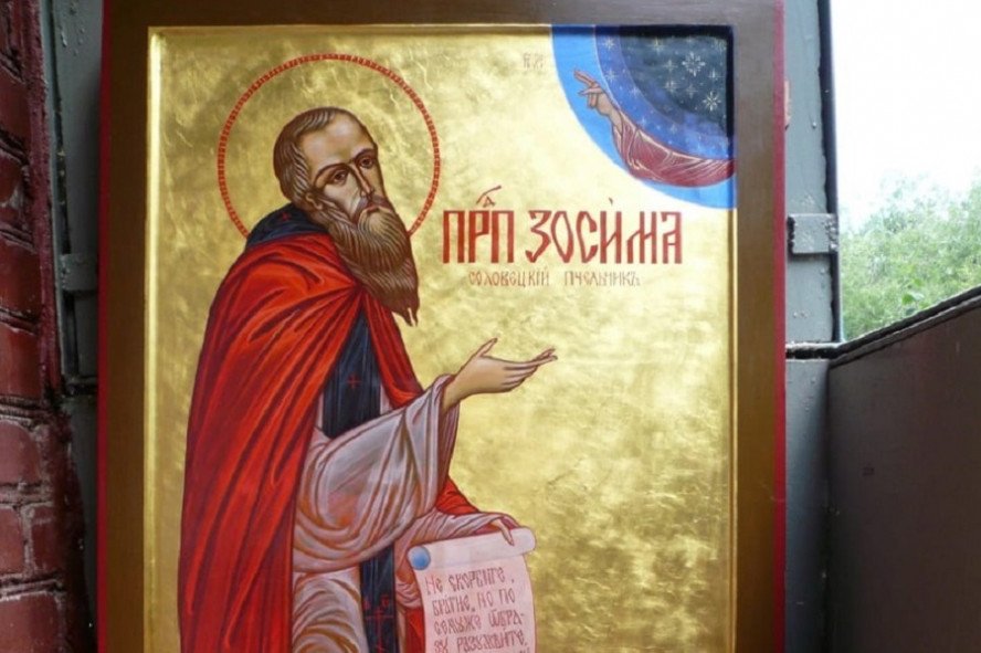 Преподобный Зосима жил в далёком XV веке. Он был родом из зажиточной семьи. В юности, после смерти родителей, ушел странствовать в поисках истины. Встретился с иноком Германом, который много рассказывал ему о преподобном Савватии, впервые поселившемся на Соловецком острове, где можно было уединиться и посвятить свою жизнь служению Богу.