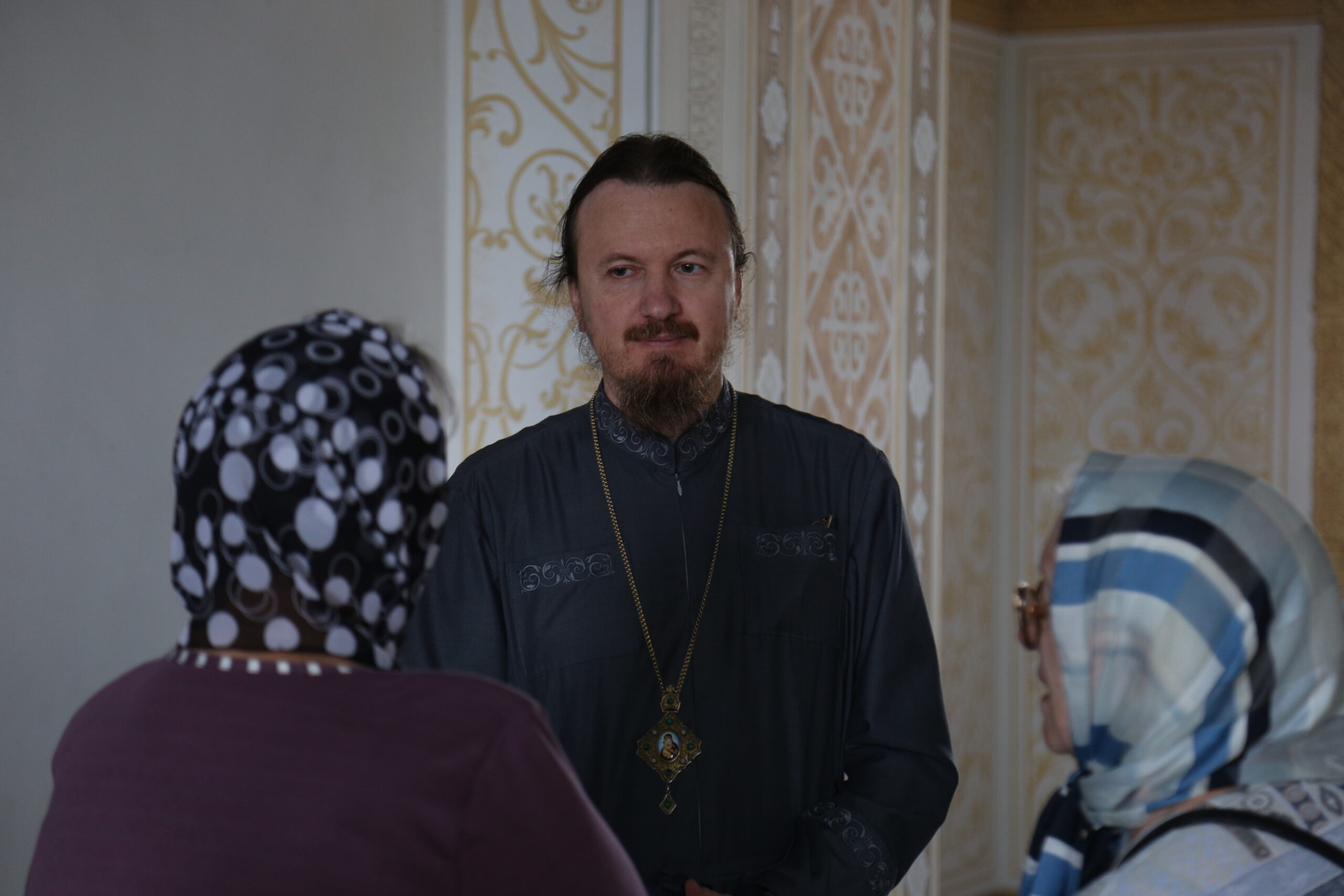 Сначала Владыка заехал в местный дом культуры, где его уже ждали многочисленные прихожане. Директор дома культуры провела небольшую экскурсию по музею и библиотеке, где хранится православная литература. Затем все вместе собрались за столом на чаепитие, где обсуждали разные темы. Прихожане задавали Владыке вопросы, на которые он охотно отвечал. Владыка Игнатий рассказывал, как жить по христиански.