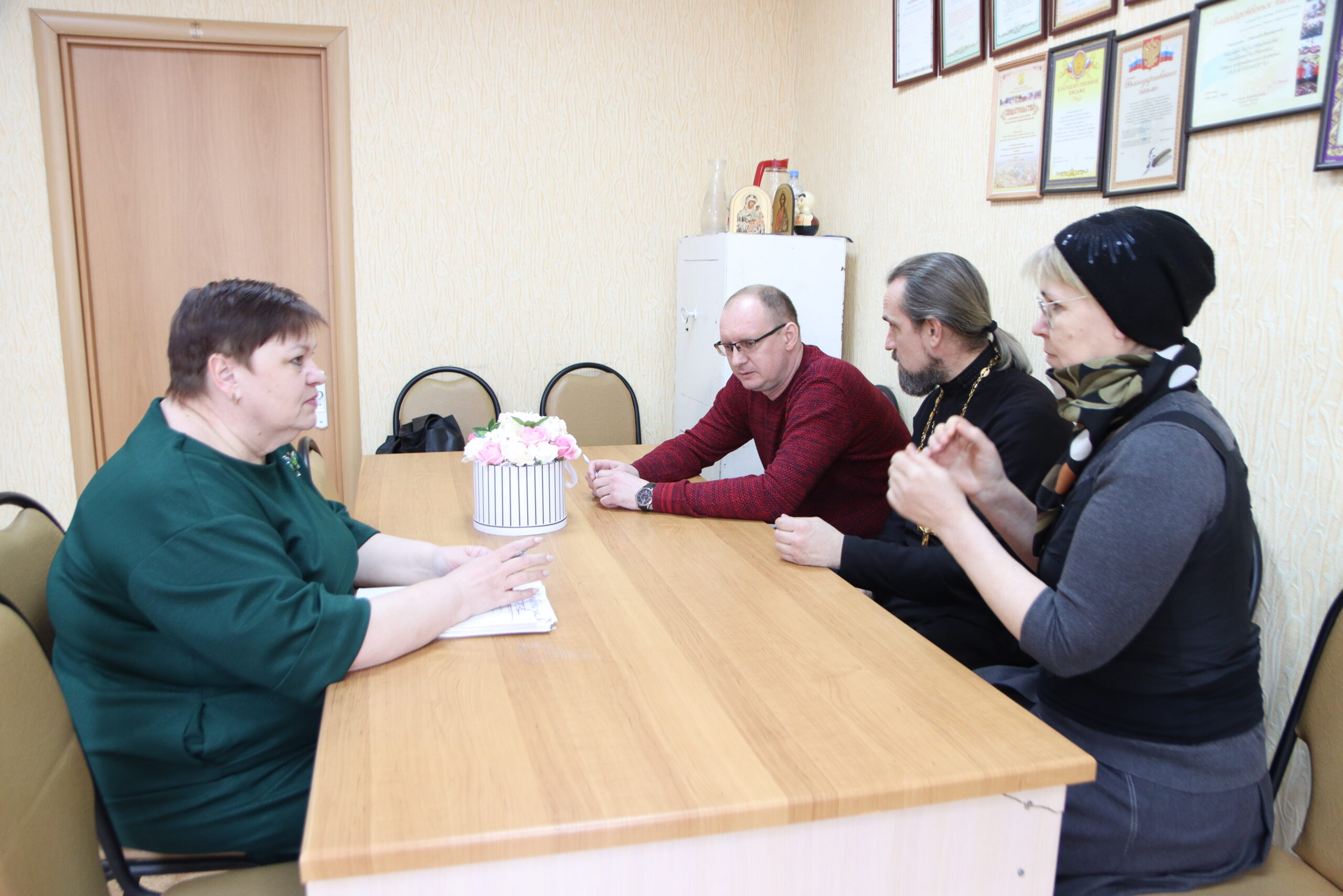 28 февраля состоялась встреча представителей отдела по социальному служению Уваровской епархии во главе с руководителем отдела священником Владимиром Алейниковым с директором ТОГБУ СОН «Центр социальных услуг для населения г. Уварово и Уваровского района» Солоповой Светланой Николаевной.