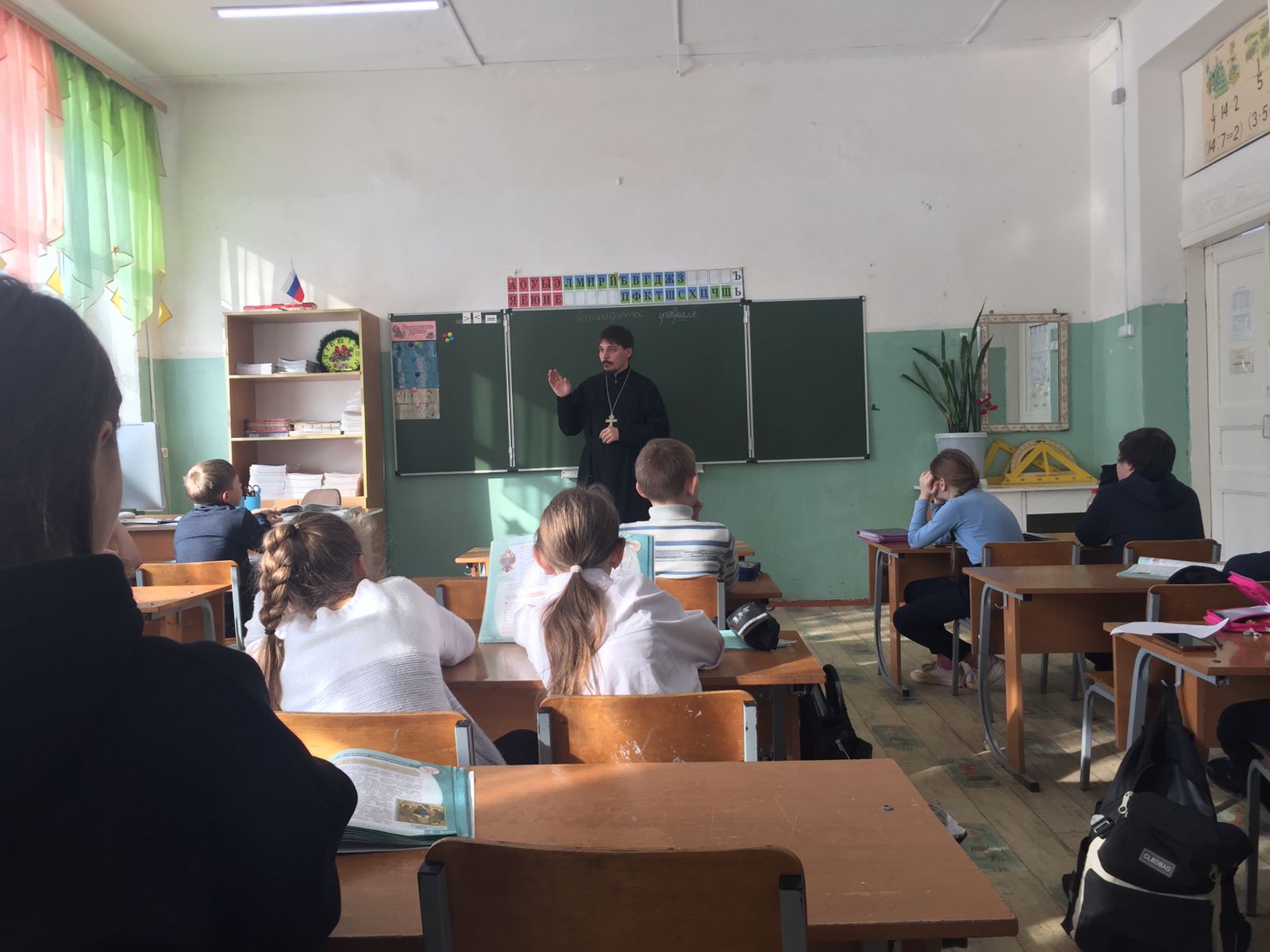 16 февраля клирик Космодамиановского храма города Кирсанова священник Алексий Битулин посетил учебный корпус №4 Кирсановской школы №1. Здесь батюшка пообщался с четвероклассниками на уроке «Основы православной культуры».