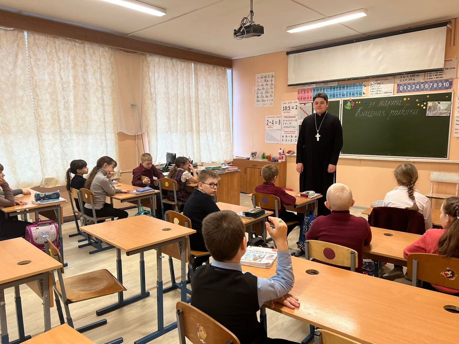 31 марта священнослужители Уваровской епархии — руководитель и сотрудник миссионерского отдела иеромонах Питирим (Сухов) и священник Ярослав Кравченко — в очередной раз встретились с учащимися 8-го корпуса Лицея им. А.И. Данилова города Уварово.