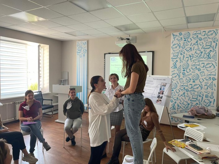 На мастер-классе рассматривались такие вопросы, как принятие ребёнка с ограниченными возможностями здоровья (ОВЗ) другими членами семьи и отношений внутри семьи. Участники мастер-класса попробовали себя в роли и родителя, и ребёнка, где старались проанализировать заданную ситуацию. Ольга Юрьевна познакомила студентов с рисуночными проективными методиками «В чём ваша проблема» и «Семейная социограмма», с помощью которых можно выявить причины неприятия ребёнка с ОВЗ, причины отрицания его недостатка.