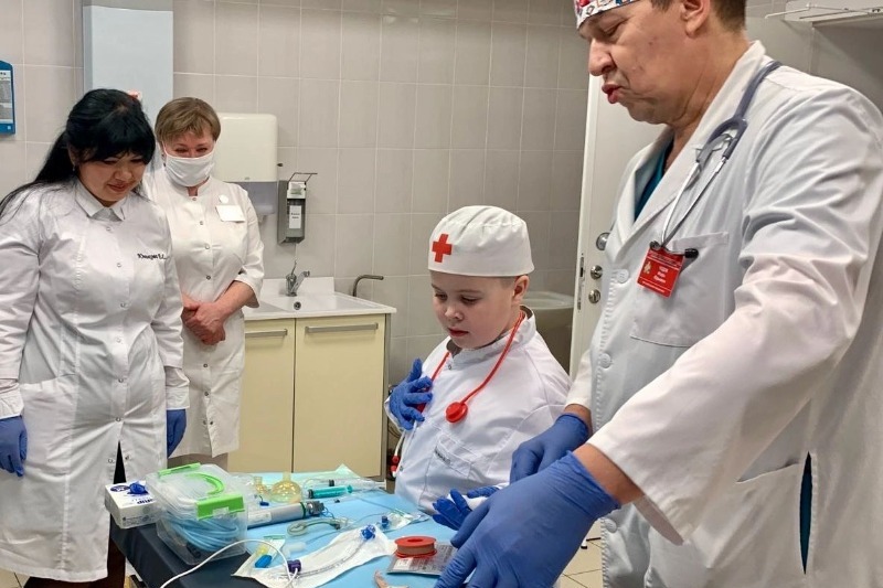 В палате интенсивной терапии мальчик под руководством наставников оказал первую медицинскую помощь… правда, не живому человеку, а манекену. В конце экскурсии Владиславу вручили новогодние подарки.