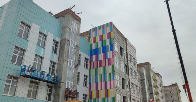 Снаружи здание тоже начинают отделывать. Фасадные работы в самом разгаре.