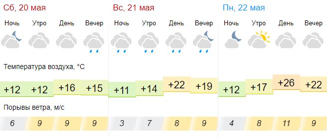 В Тамбовской области 20 мая ожидается переменная облачность. Температура воздуха ночью +10..12°, днем +19..21°. 21 мая ожидается переменная облачность, местами ожидается небольшой дождь, возможна гроза. Ночью воздух прогреется до +7..+9°, днем до +19..21°. 22 мая ожидается переменная облачность, небольшой дождь. Температура ночью +11..13°, днем +21..23°.
