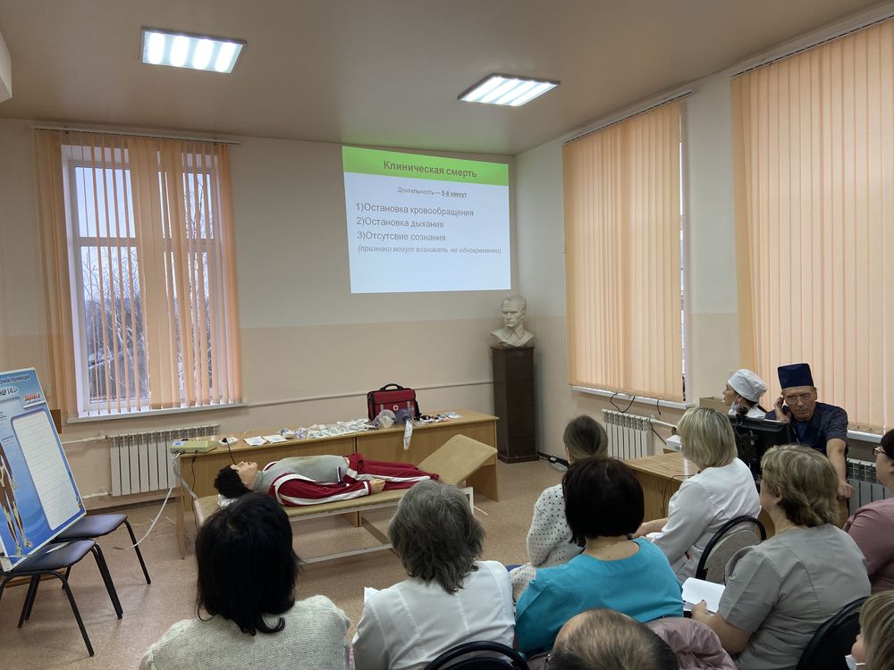 В ТОГБУЗ «Моршанская ЦРБ» прошла последняя в этом году сестринская конференция. На которой врач анестезиолог-реаниматолог Черсков А.П. рассказал о проведении базовой сердечно-легочной и церебральной реанимации. Сердечно-легочная реанимация — это комплекс мероприятий, направленных на возвращение человека к жизни в случае остановки кровообращения и дыхания. Андрей Петрович рассказал о показаниях и противопоказаниях к проведению СЛР, оценке состояния пострадавшего. Первая помощь заключается в проверке наличия сознания, дыхания, вызове экстренных служб, выполнения сердечно-легочной реанимации, состоящей из непрямого массажа и искусственной вентиляции легких (рот-в-рот). Далее медсестра-анестезист Дворникова А.Г. практически показала алгоритм проведения СЛР на симуляционном тренажере-манекене. Подробно разобраны ошибки при выполнении реанимационных мероприятий, это нарушение последовательности мероприятий сердечно-легочной реанимации, неправильная техника выполнения давления руками на грудину пострадавшего, неправильная техника выполнения искусственного дыхания, неправильное соотношение надавливаний руками на грудину и вдохов искусственного дыхания, время между надавливаниями руками на грудину пострадавшего превышает10 сек. В практической части все участники смогли сами попробовать провести сердечно-легочную реанимацию, отработав таким образом свой навык. Данное обучение очень важно,