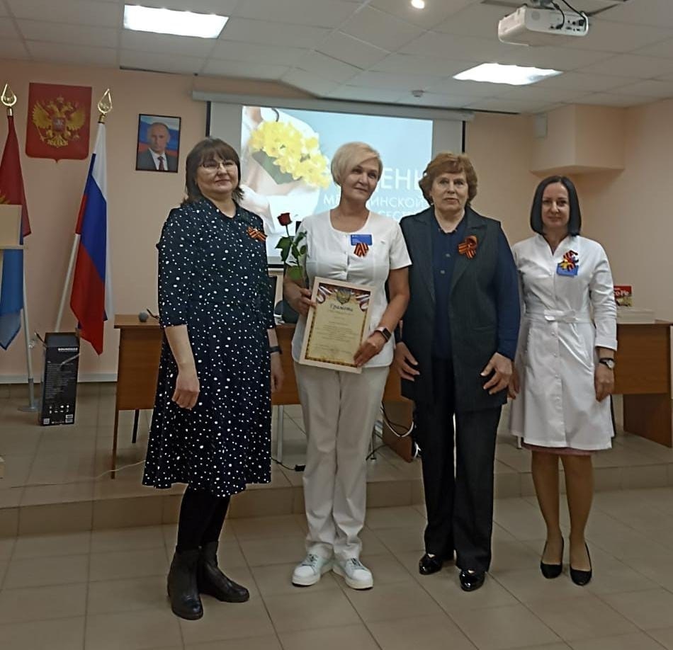 И.о. главного врача Руднева И.Ю., председатель профсоюзной организации Гагулина Г. Н. и главная медицинская сестра Струкова Е. А. со словами благодарности вручили почётные грамоты Министерства Здравоохранения Тамбовской области,