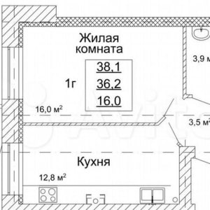 - Общая площадь: 38 м²