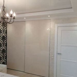 2 комната - 20 м. - жемчужного цвета 3D панели, зеркало от пола до потолка из ромбов, дополнительная подсветка потолка.